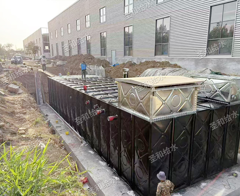 底部钢筋混凝土整板基础与水箱侧板连接,形成整体结构抵消地下水浮力,无需额外抗浮桩。密封条螺栓紧固,杜绝渗漏风险,适应高水位地质条件。